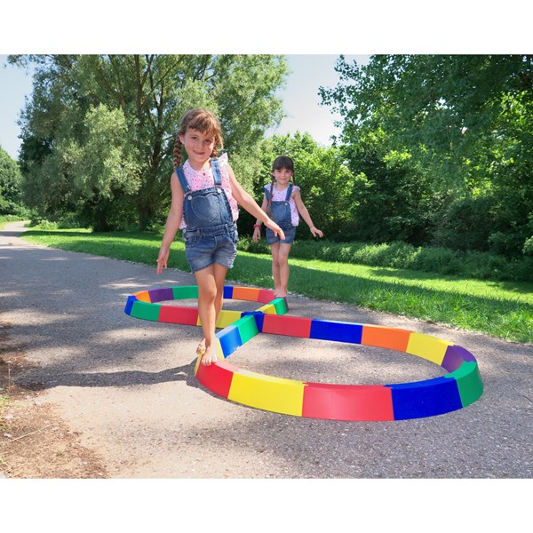 Dank 12 cm Breite stehen die 27 Steine fest und sicher. Der Pfad auf der Mauer oben ist aber nur 5 cm breit. Da wird das Balancieren zu einer spannenden Angelegenheit. Zum sicheren Verbinden werden die einzelnen Teile einfach ineinandergeschoben. So bauen die Kinder immer neue Formen und Wege. Sie stellen sich immer wieder neuen Herausforderungen und das Balancieren wird nie langweilig. Die Kinder fördern beim Balancieren ihre Konzentration, Körperbeherrschung, Geschicklichkeit und den Gleichgewichtssinn.
